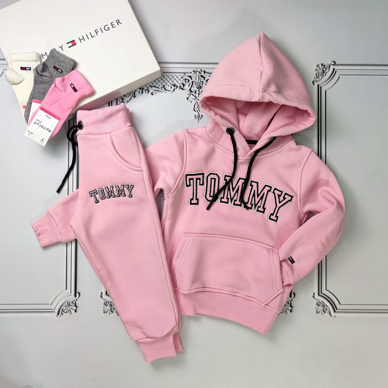 Дитячий, рожевий підлітковий теплий спортивний костюм на флісі Томмі для дівчат