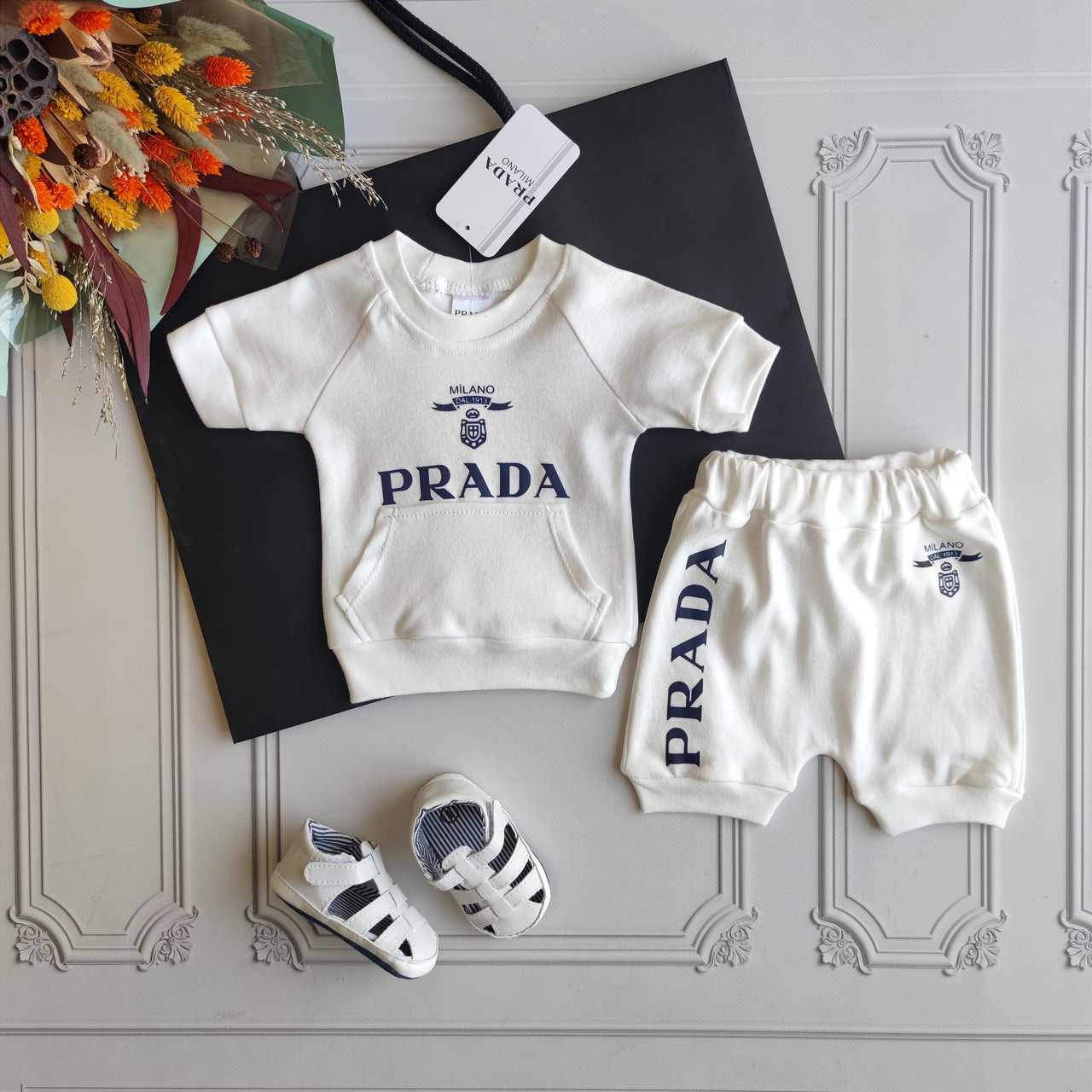 Дитячий білий літній костюм з шортами для новонароджених Прада